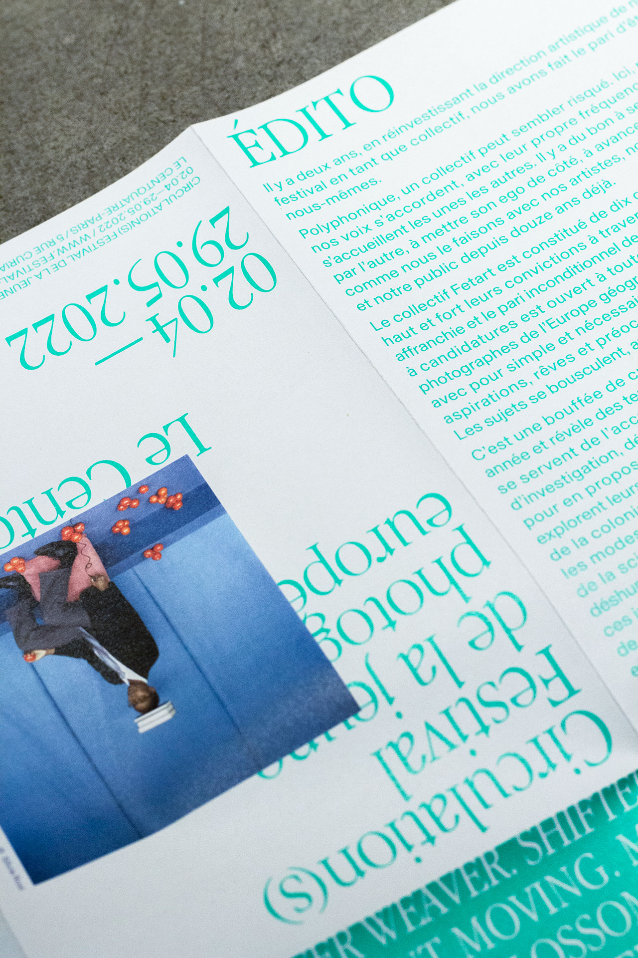 Mes autres missions ont été de décliner les supports de communication — affiche, dépliant programme, flyers, invitations, goodies — ainsi que la signalétique du festival — édito, totems de malau, stickers, cimaises, etc. — selon l’identité créée par Twice studio en 2021.